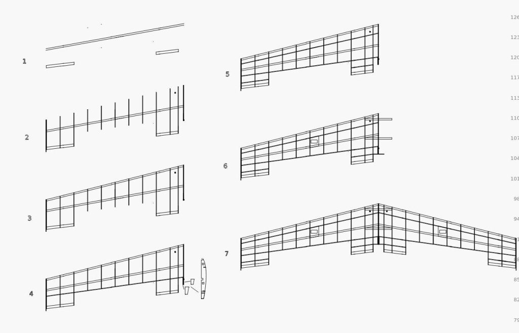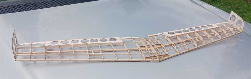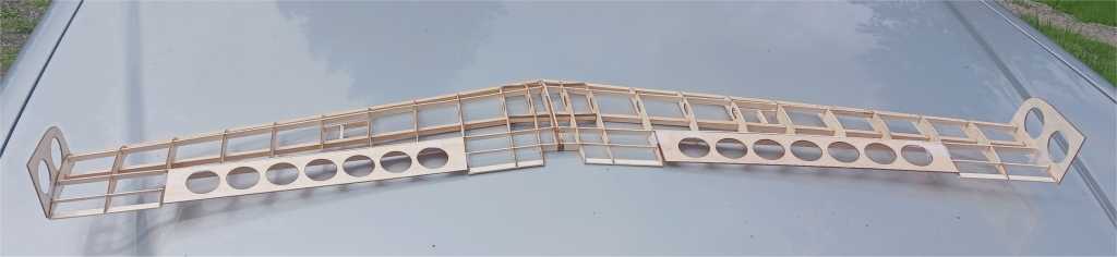 - After right side of wing is complete, test fit and fine tune the cross-members before gluing and joining the halves.