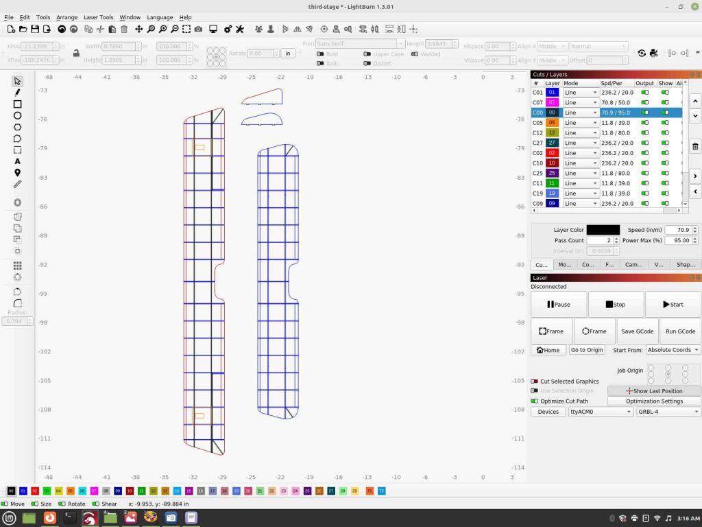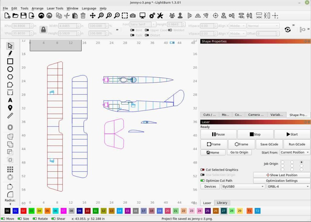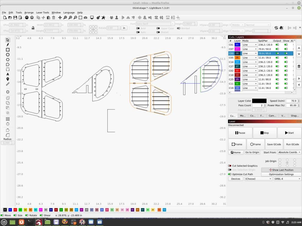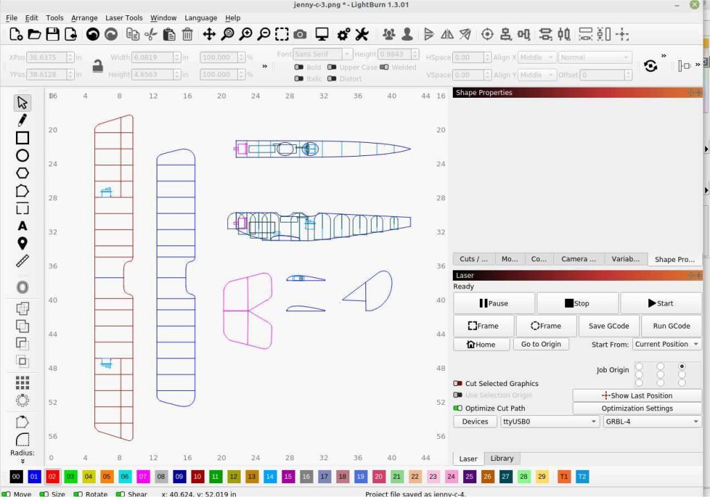 More with the third stage for instruction. I do suggest to leave the cockpit sheets merely engraved for new builders and cutting out afterwards. There is also a ring around the nose of the grill/nose cover that is not shown. The assembly on the grill and nose cover is only taped on or using covering to keep in place to allow for access to the motor after the fact.
